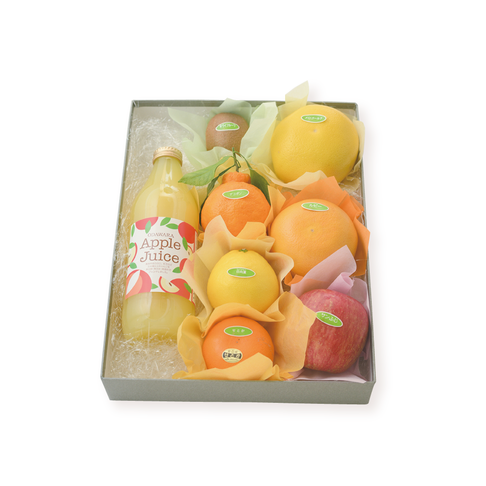 odawaraで人気のアップルジュースと、旬のフルーツを詰め合わせたおまかせギフトです。